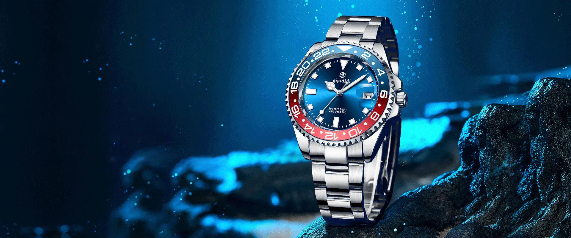 Gigididi Automatic Mechanical Watch Male American Stainless Steel Scratch Proof Waterproof Diving Watch Business Leisure Watch